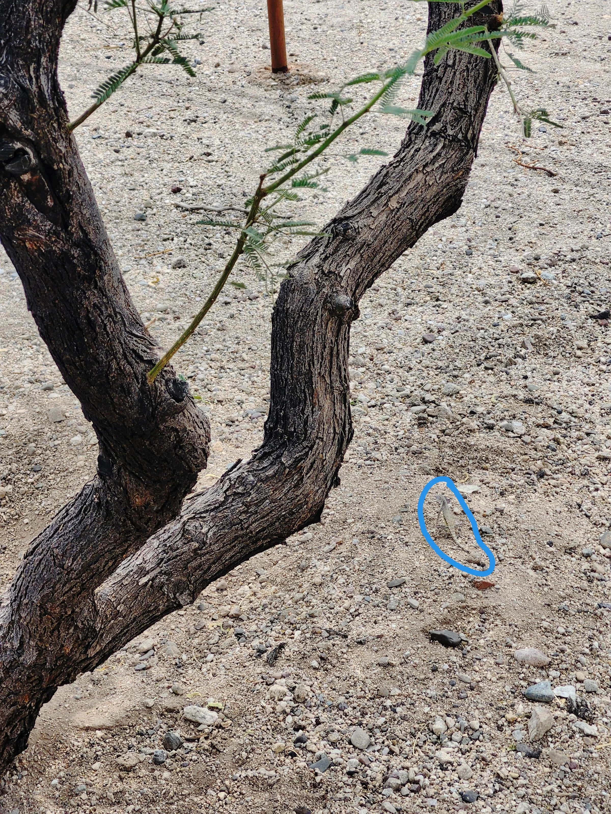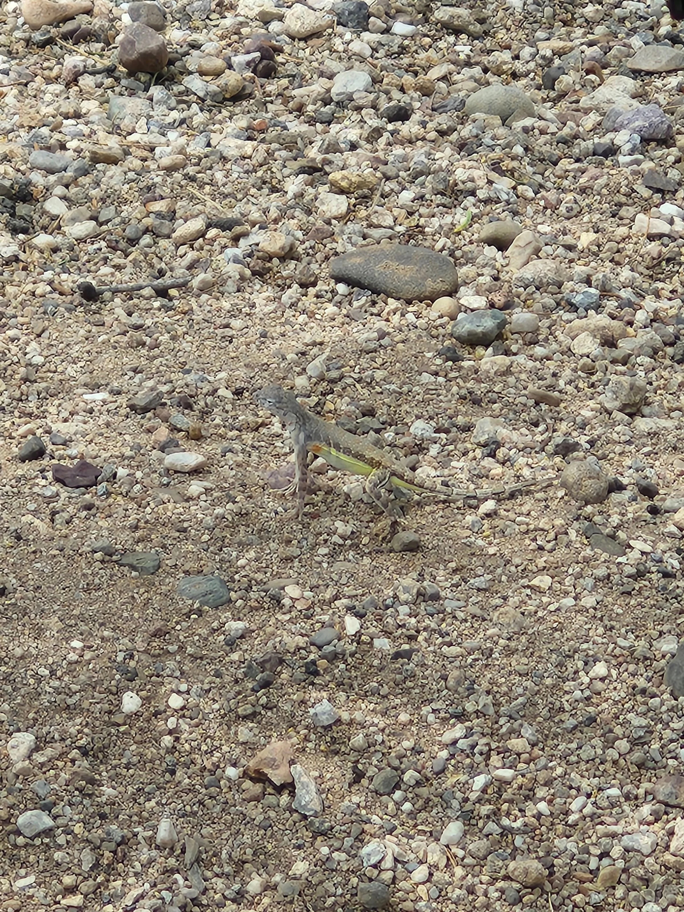 Upon looking at the close-up photo, it seems like this individual has faint belly bands right below the front legs, and this photo (second image) of a zebra-tailed lizard that looks very similar to our reference photo, I’m going to go zebra-tailed lizard, Callisaurus draconoides .